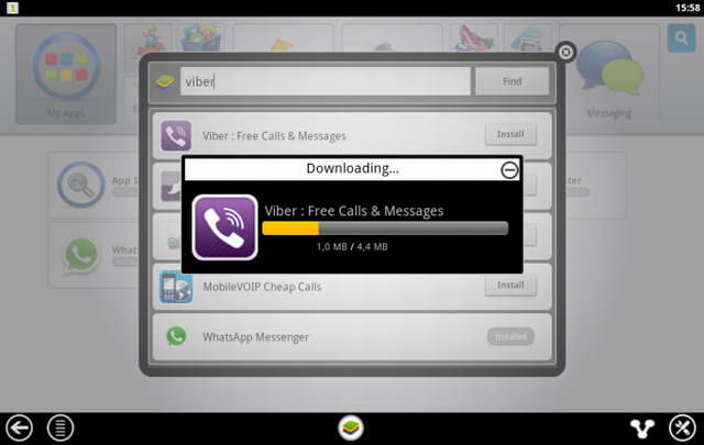 • انقر على زر تطبيقاتي وستلاحظ شريط بحث التطبيق. اكتب تطبيق Viber Messenger وانقر مرة أخرى.