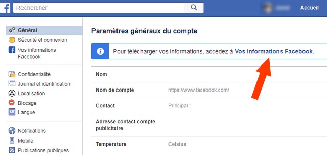 - ضمن “إعدادات الحساب العامة” ، انقر فوق معلومات الفيسبوك الخاصة بك.